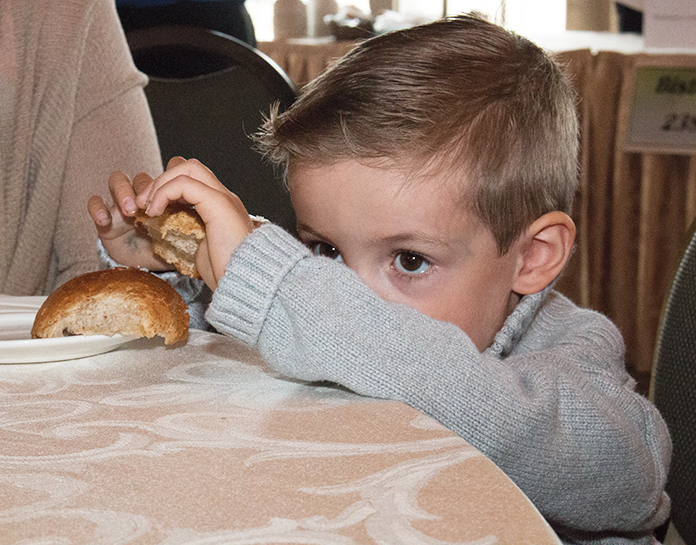 feedtheneed2wtif Published November 11, 2016 at 696 × 545 in A soup kitchen with a difference ← Previous Three-year-old Bennett Fraser from Whitby enjoys his bread roll between mouthfuls of soup at the Feed the Need in Durham Empty Bowls event. Photo by Barbara Howe