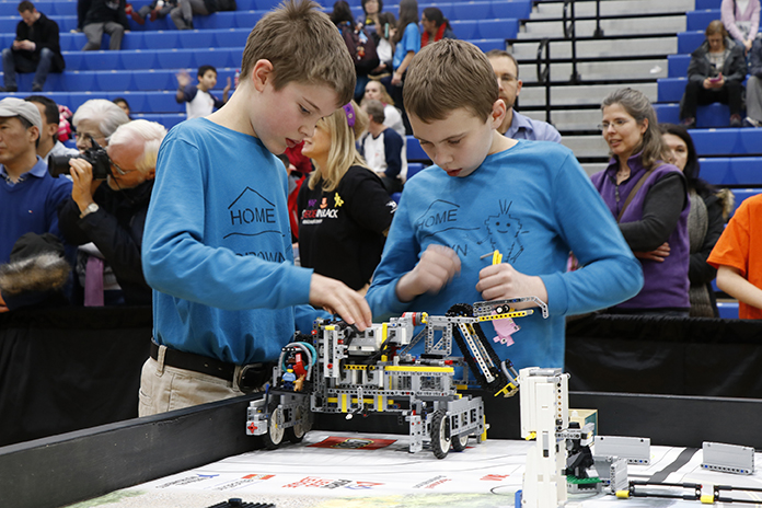 legoleague Published January 19, 2017 at 696 × 464 in Smart robots battle it out at FIRST LEGO Challenge Mackenzie Bailey and David Feenstra at the FIRST Lego League provincial championships at Durham College. Photo by Barbara Howe
