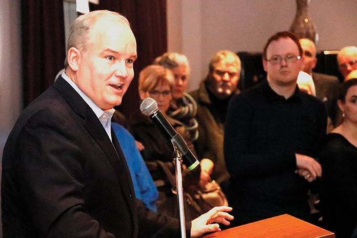 Erin O’Toole Published February 11, 2017 at 696 × 464 Durham MP, Erin O’Toole, speaks to a crowd at The Venue, Peterborough,Ont. Photo by Barbara Howe